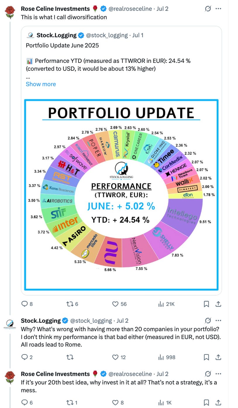 Rose’s response says it all. “Why invest in your 20th best idea?”