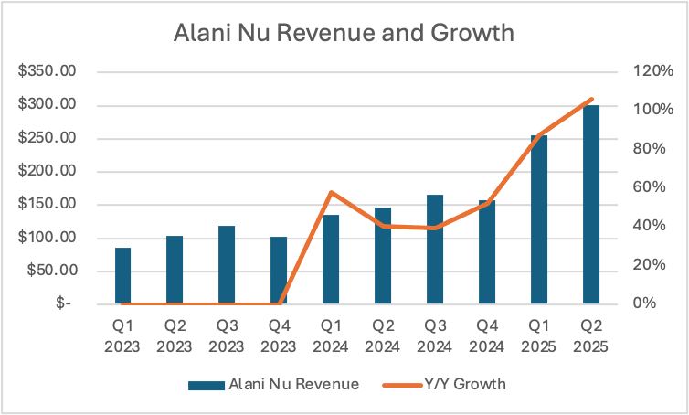 However, so far this year, the stock is up 139%, as organic growth returns to the Celsius brand and the Alani Nu acquisition has proven to be a masterstroke!