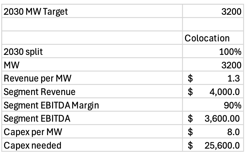 Modelling a $8M capex per MW to bring all of this capacity online as colocation AI data centers could cost $27B!