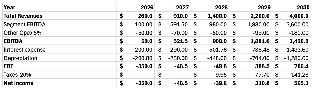 We get a total 2030 revenues of $4B, and segment EBITDA of $3.6B!