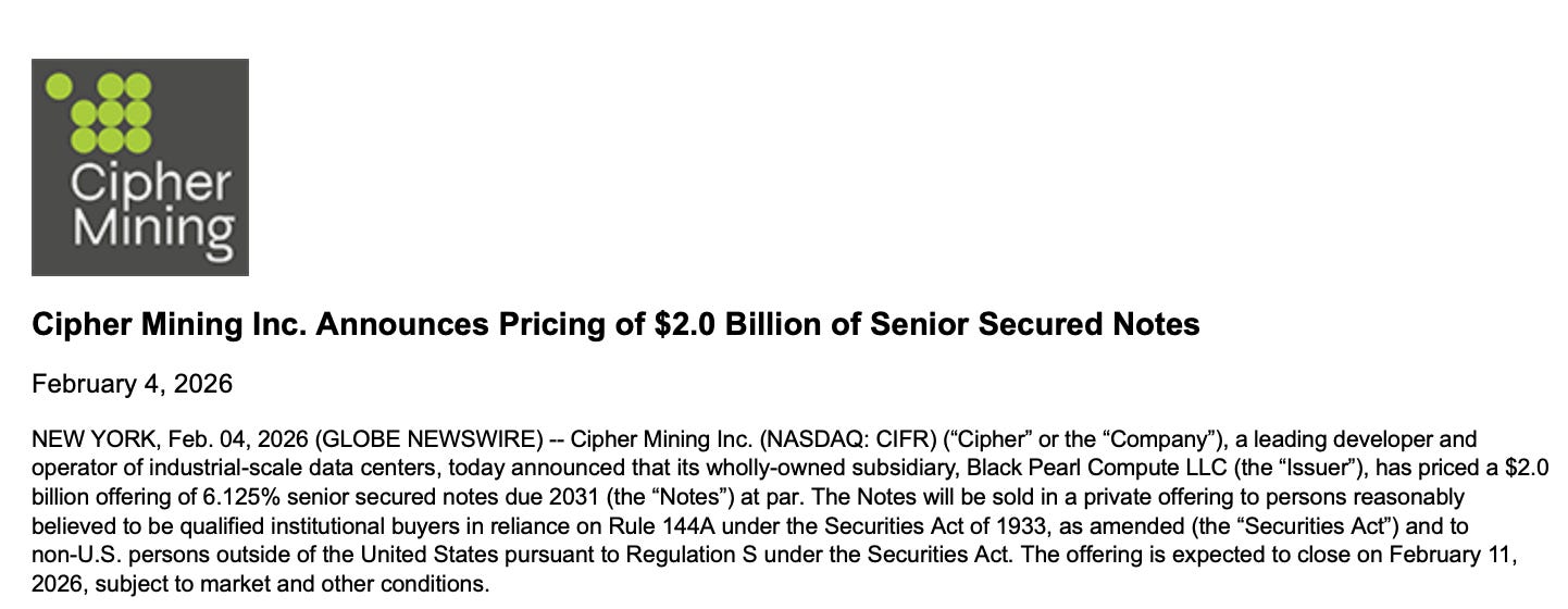 CIFR is financing this deal with a $1.73B, 7.125% interest 5-year note.