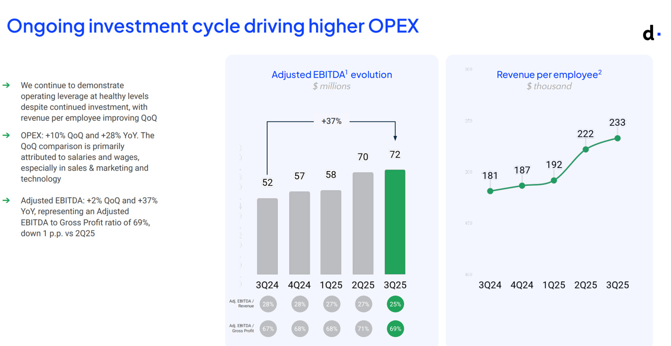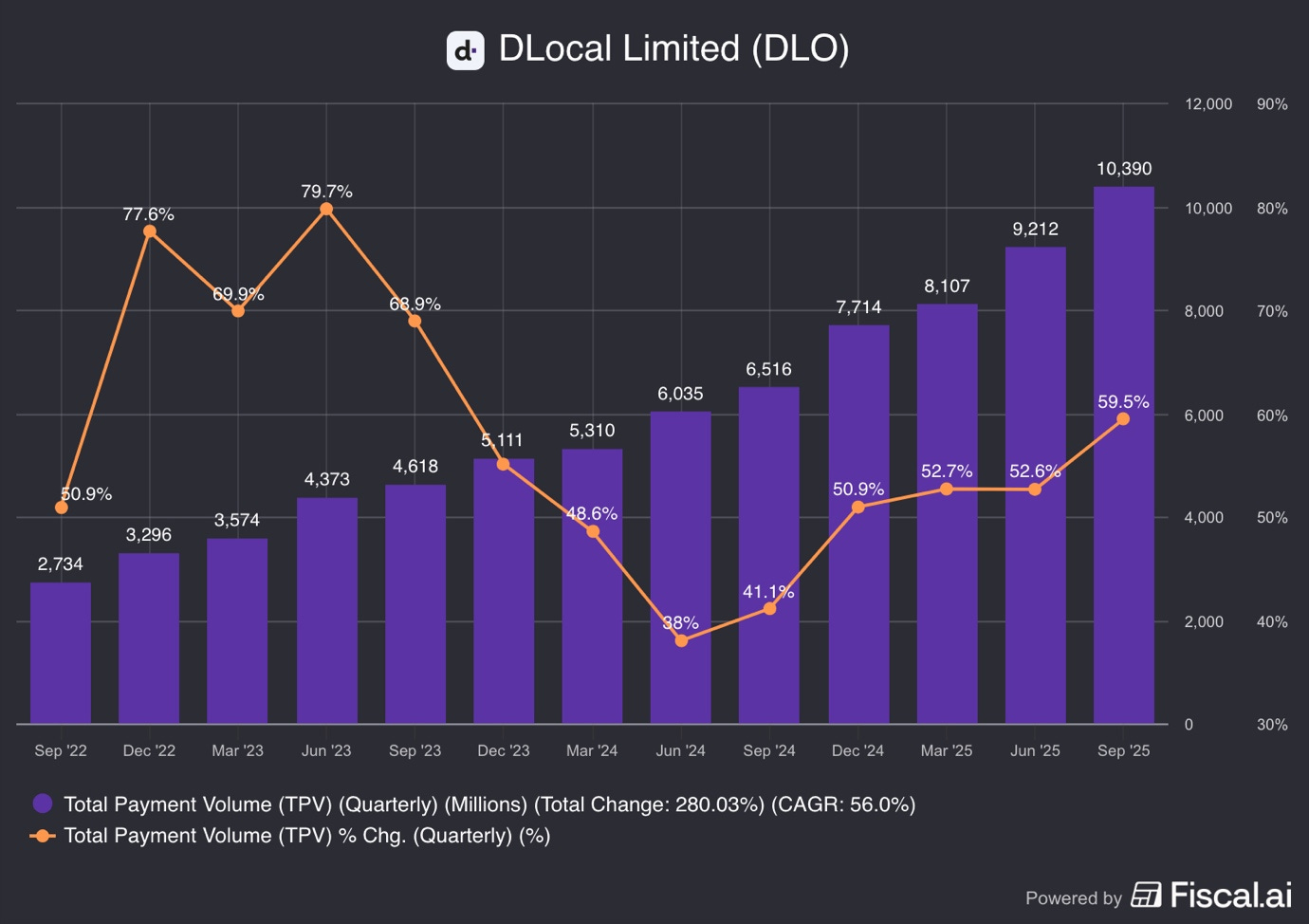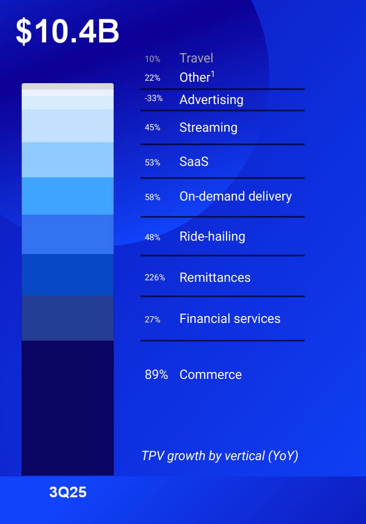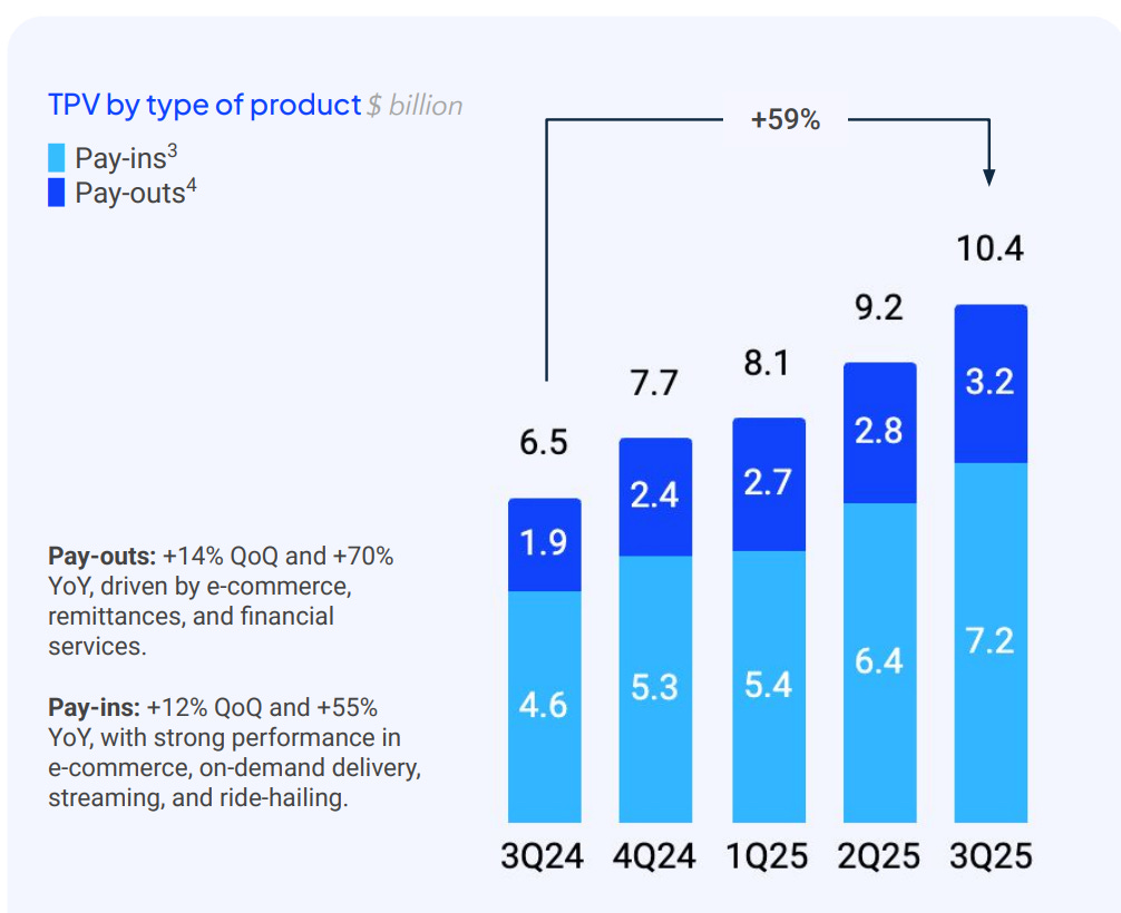 In Q3 2025, Dlocal grew payment volumes by an exceptionally strong 59.5% Y/Y, reaching $10.4B!