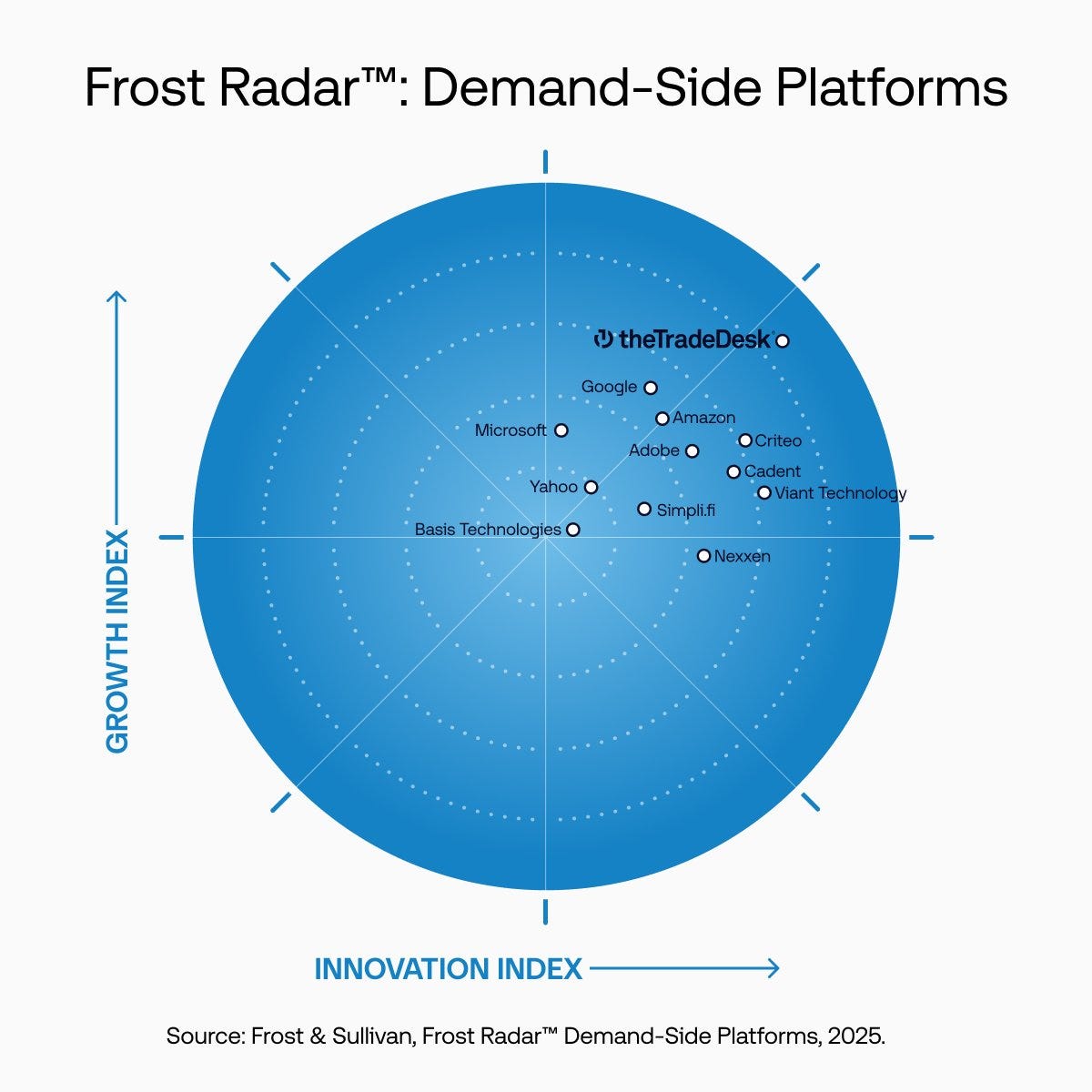 The Trade Desk recognized as a leading vendor in 2025 Frost Radar for Demand-Side Platforms for the second consecutive time, emerging as the Innovation and Growth leader, scoring 5 out of 5 on the Innovation Index and 4.80 out of 5 on the Growth Index.