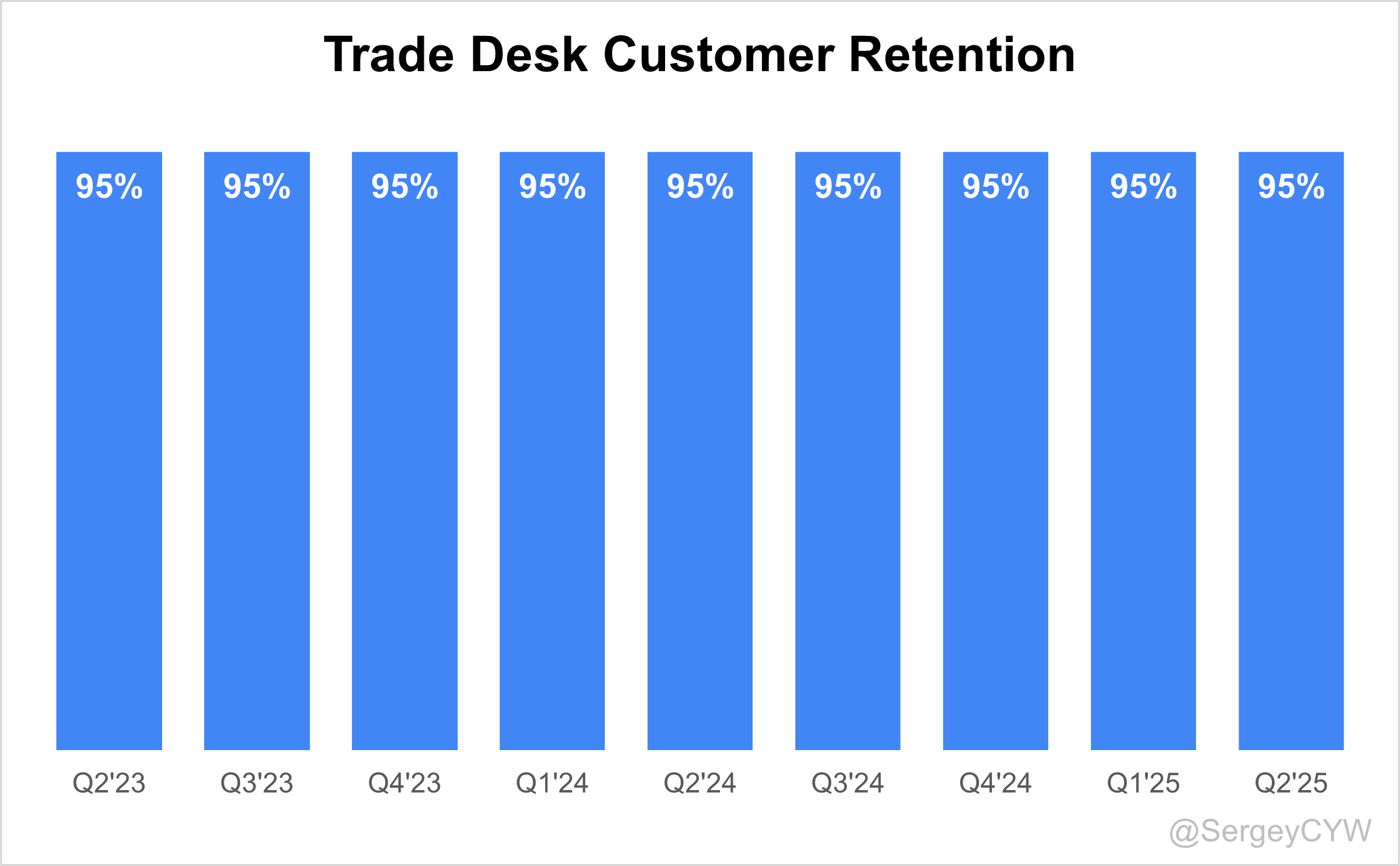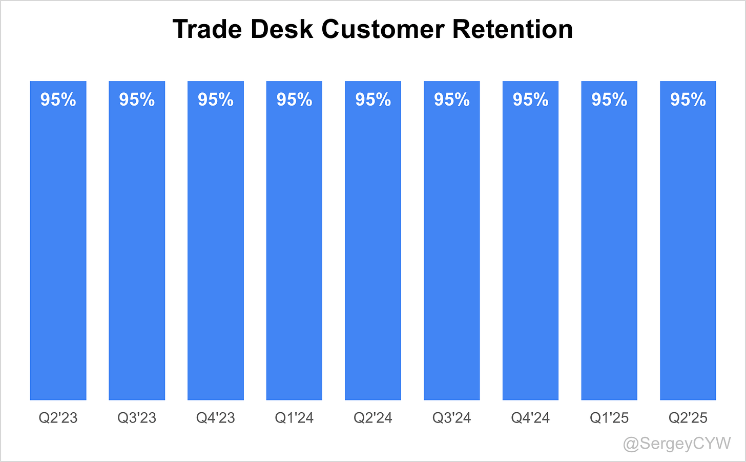 $TTD’s Customer Retention Rate has remained high for a long time, consistently above 95%.