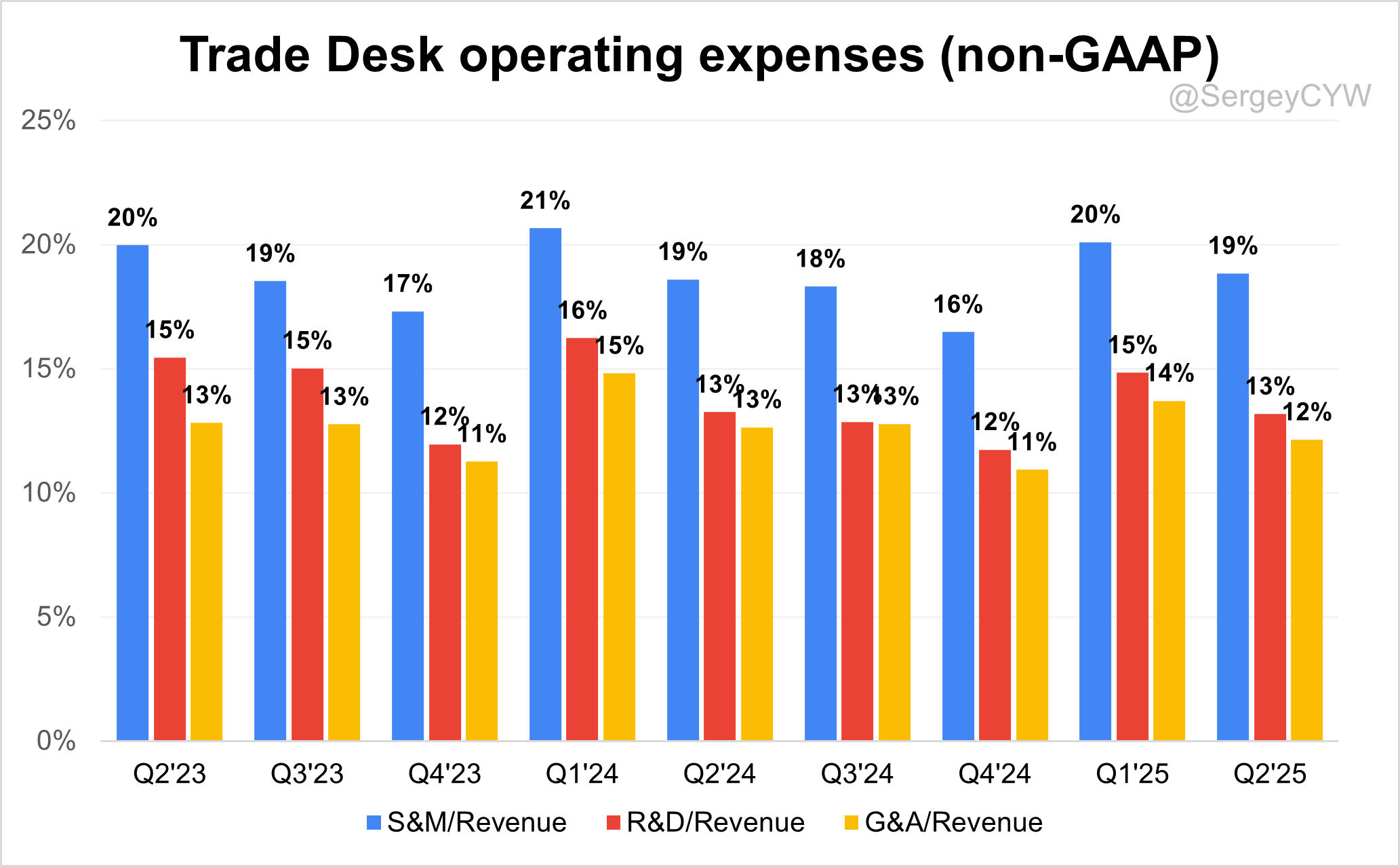 $TTD The Trade Desk’s non-GAAP operating expenses have decreased, driven by reductions in S&M, R&D, and G&A spending.