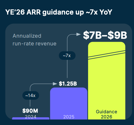 The company expects to close 2026 with an ARR of $7-9B, a 7x Y/Y increase!