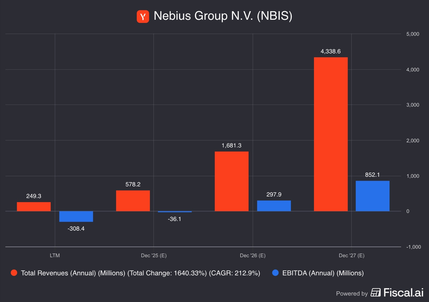 Yes, you read that right, it is highly likely that Nebius 2027 analyst estimates will increase by 100% in the next few months and a year as analysts realize this and update their estimates.