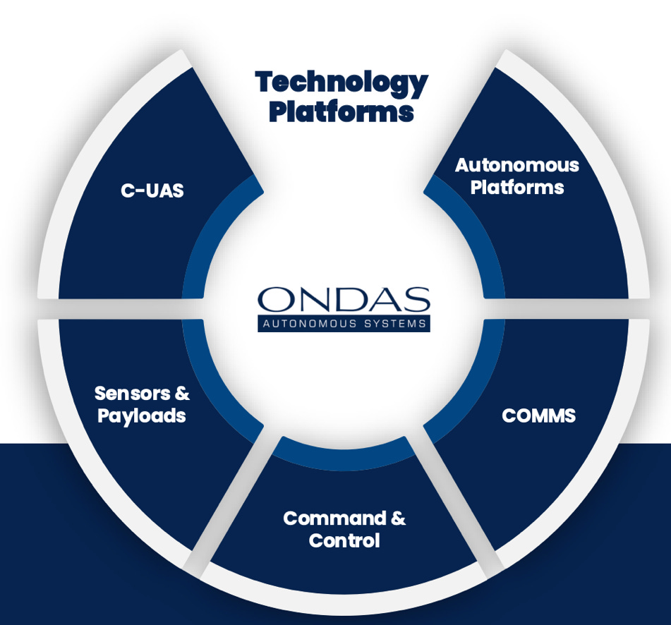 Ondas objective is to become a premier military systems integrator, acquiring, developing, or partnering with manufacturers of drones, robots, sensors, components, and other military systems.
