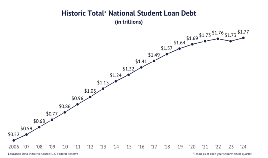 As of 2024, the total US student loan debt balance stands at $1.77T!
